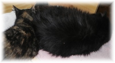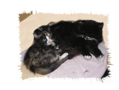 Da unsere Amy Katzen liebt, haben wir sie erst mal mit Lucy zusammengebracht. Lucy hat mehrmals übelst gefaucht, aber Amy hat mit ihrer coolen und ruhigen Art dem kleinen Tiger schnell klar gemacht, daß das ja wohl unnötig ist :) |